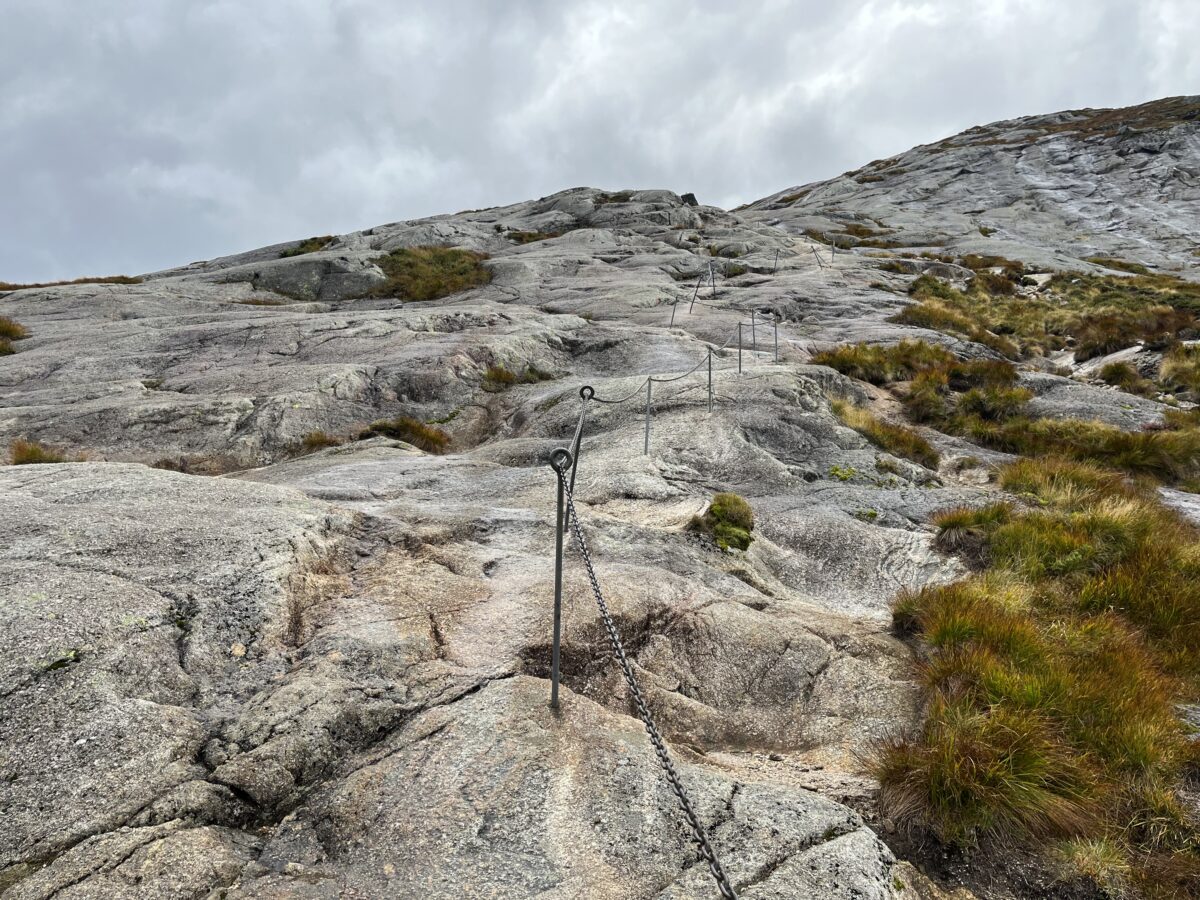一開始就迎來大石階和鐵鍊路段,需要手腳並用。
