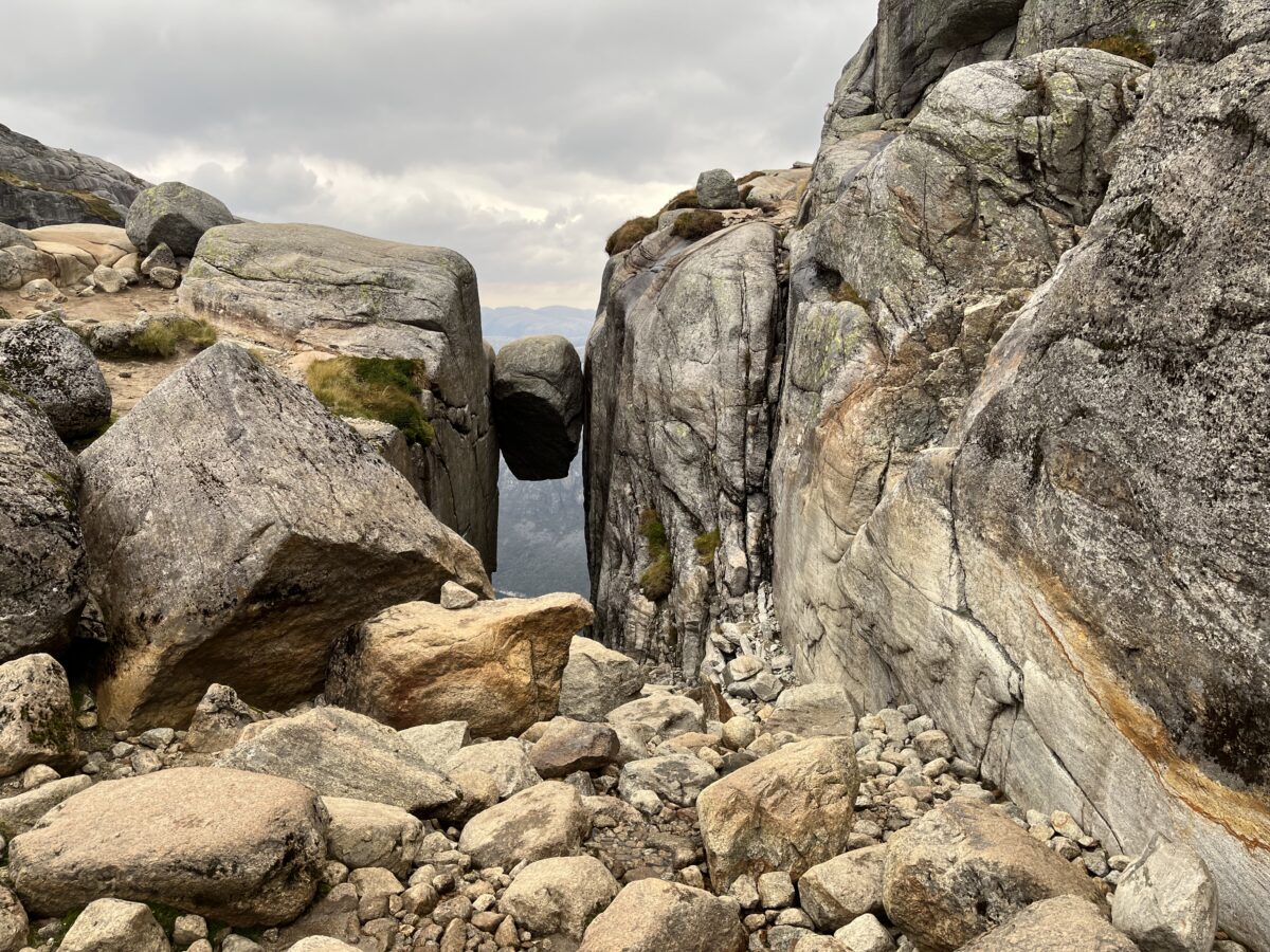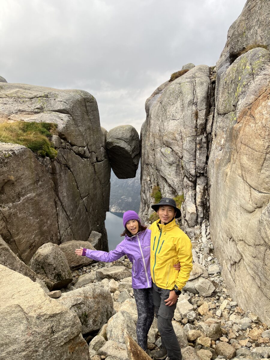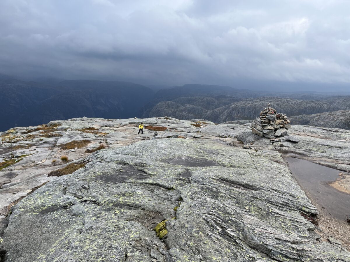 這天因為取消了斯塔萬格的 hash run,我們把計畫調整為先挑戰路途較長的奇蹟石。住宿的早餐依舊豐盛,我們吃得飽飽,還順手準備了午餐。一路開了快三個小時,整趟車程觀察到雲層都很厚重,還陣陣下雨,但既然都來了,還是一路朝著奇蹟石登山口的方向前進。