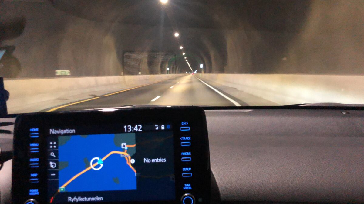 繳停車費後先去住宿小鎮 Sport 1 / 亞洲超市,買了 Tom Yum 口味 MAMA 麵和辛拉麵。開車經過長長海底隧道進入斯塔萬格,走這條只要36分鐘,走無收費路段要1個小時20分鐘,差蠻多時間的,只是海底隧道的過路費也不便宜要134+20,加20是因為後面還有一段短一點的海底隧道。先在 Coop Mega 購買熟食,再去石中劍拍照。太陽出來後風還冷,外套派上用場。